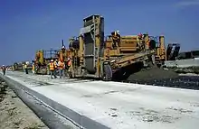 In the United States, highway bridges and hundreds of miles of highway paving have been constructed using concretes made from EMC derived from fly ash.[5] These projects include sections of Interstate 10.[5] In these projects, EMC replaced at least 50% of the Portland cement in the concrete poured.[26] This is about 2.5 times more than the typical amount of fly ash in projects where energetic modification is not used.[33] Independent test data showed 28-day strength-development requirements were exceeded in all projects. In 2009, fly ash EMCs were demonstrated to exceed the 'Grade 120 Slag' benchmark per ASTM C989.[26]