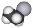 Ethylmercury (C2H5Hg+) is a substituent of compounds: it occurs as a component of compounds of the formula C2H5HgX where X = chloride, thiolate, or another organic group. Most famously X = the mercaptide group of thiosalicylic acid as in thiomersal. In the body, ethylmercury is most commonly encountered as derivatives with a thiolate attached to the mercury.[2] In these compounds, Hg(II) has a linear or sometimes trigonal coordination geometry. Given the comparable electronegativities of mercury and carbon, the mercury-carbon bond is described as covalent.[3]: p. 79