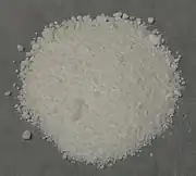 Europium(III) nitrate can be obtained by reacting europium(III) oxide and nitric acid and crystallizing. The crystal is dried with 45~55% sulfuric acid to obtain hexahydrate.[58] Its anhydrous form can be obtained by the reaction of europium oxide and dinitrogen tetroxide, while heating the hydrate can only obtain the basic salt EuONO3.[59] Europium(III) phosphate can be obtained by reacting europium(III) chloride and diammonium hydrogen phosphate (or europium(III) oxide and 5 mol/L phosphoric acid[60]), and its white monohydrate precipitates from solution. It loses water at 600~800 °C, and changes from a hexagonal phase with water to an anhydrous monoclinic phase.[61] Europium(III) oxide reacts with arsenic pentoxide to obtain europium(III) arsenate, which is a colorless crystal with a xenotime structure.[62]