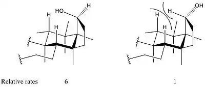 The rate limiting step of this reaction is proposed to be the initial association of the alcohol to the silver ions. As a result, the presence of even weakly associating ligands to the silver can inhibit the reaction greatly. As a result, even slightly polar solvents of any variety, such as ethyl acetate or methyl ethyl ketone, are avoided when using this reagent as they competitively associate with the reagent.[5] Additional polar functionalities of the reactant should also be avoided whenever possible as even the presence of an alkene can sometimes reduce the reactivity of a substrate 50 fold.[6] Commonly employed solvents such as benzene and xylene are extremely non-polar and further acceleration of the reaction can be achieved through the use of the more non-polar heptane.[6] The solvent is also typically refluxed to drive the reaction with heat and remove the water generated by the reaction through azeotropic distillation. Steric hindrance of the hydrogen alpha to the alcohol is a major determination of the rate of oxidation as it affects the rate of association.[5] Tertiary alcohols lacking an alpha hydrogen are selected against and generally do not oxidize in the presence of Fétizon's reagent.[7]