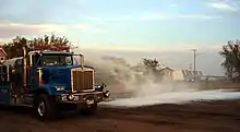 Raindown method - Used when unable to employ the bankshot method or the roll-on method. Loft the foam stream into the air above the material and let it fall gently onto the surface. Effective as long as the foam stream completely covers the material. Might not be effective if wind conditions are unfavorable