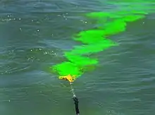 - Fluorescent sea dye is used to help airborne search and rescue teams locate objects in the water