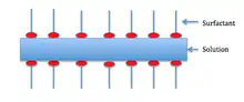 An even lower scale is the liquid–air interface at the surface of the film. Most of the time this interface is stabilized by a layer of amphiphilic structure, often made of surfactants, particles (Pickering emulsion), or more complex associations.