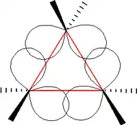 Bonding between the carbon centres is generally described in terms of bent bonds.[17] In this model the carbon-carbon bonds are bent outwards so that the inter-orbital angle is 104°.