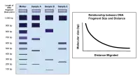 The image above shows how small DNA fragments will migrate through agarose quickly but large size DNA fragments move more slowly during electrophoresis. The graph to the right shows the nonlinear relationship between the size of the DNA fragment and the distance migrated.