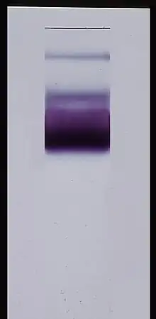Partially hydrolysed potato starch makes for another non-toxic medium for protein electrophoresis. The gels are slightly more opaque than acrylamide or agarose. Non-denatured proteins can be separated according to charge and size. They are visualised using Napthal Black or Amido Black staining. Typical starch gel concentrations are 5% to 10%.[14][15][16]