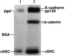 SDS-PAGE autoradiography – The indicated proteins are present in different concentrations in the two samples.