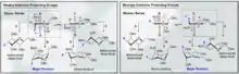 When an anomeric center is involved in a glycosidic bond (as is common in nature) then one can distinguish between α- and β-glycosidic bonds by the relative stereochemistry of the anomeric position and the stereocenter furthest from C1 in the saccharide.[2]