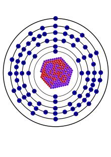 198Au is used for radiotherapy in some cancer treatments.[4][5] Its half-life and beta decay energy are favorable for use in medicine because its 4 mm penetration range in tissue allows it to destroy tumors without nearby non-cancerous tissue being affected by radiation.[6] For this reason, 198Au nanoparticles are being investigated as an injectable treatment for prostate cancer.[6][7]