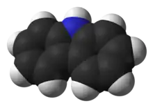 Carbazole is an aromatic heterocyclic organic compound. It has a tricyclic structure, consisting of two six-membered benzene rings fused on either side of a five-membered nitrogen-containing ring. The compound's structure is based on the indole structure, but in which a second benzene ring is fused onto the five-membered ring at the 2–3 position of indole (equivalent to the 9a–4a double bond in carbazole, respectively).