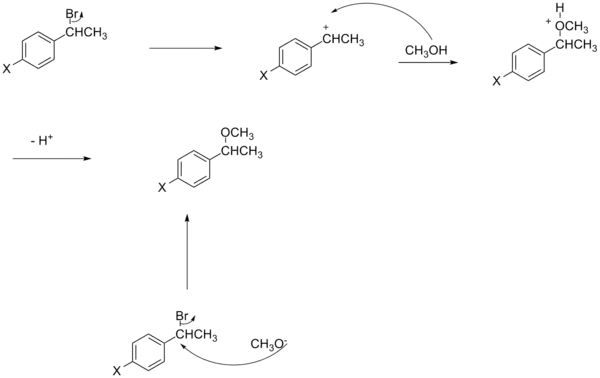 A change in the mechanism of a reaction also results in nonlinearity in the Hammett plot. Typically, the model used for measuring the changes in rate in this instance is that of the SN2 reaction.[15] However, it has been observed that in some cases of an SN2 reaction that an EWG does not accelerate the reaction as would be expected[16] and that the rate varies with the substituent. In fact, the sign of the charge and degree to which it develops will be affected by the substituent in the case of the benzylic system.[15]