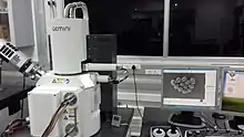 Similar to EDX, X-ray diffraction analysis (XRD) involves the generation of characteristic X-rays upon interaction with the sample. The intensity of diffracted rays scattered at different angles is used to analyze the physical properties of a material such as phase composition and crystallographic structure.[20] These techniques can also be coupled to achieve a better effect. For example, SEM is a useful complement to EDX due to its focused electron beam, it produces a high-magnification image that provides information on the surface topography.[18] Once the area of interest has been identified, EDX can be used to determine the elements present in that specific spot. Selected area electron diffraction can be coupled with TEM or SEM to investigate the level of crystallinity and the lattice parameters of a sample.[21]