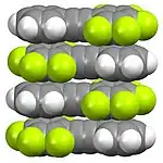 - C.E. Smith; P.S. Smith; R.Ll. Thomas; E.G. Robins; J.C. Collings; Chaoyang Dai; A.J. Scott; S. Borwick; A.S. Batsanov; S.W. Watt; S.J. Clark; C. Viney; J.A.K. Howard; W. Clegg; T.B. Marder (2004). "Arene-perfluoroarene interactions in crystal engineering: structural preferences in polyfluorinated tolans". J. Mater. Chem. 14 (3): 413. doi:10.1039/b314094f. CSD entry ASIJIV.
