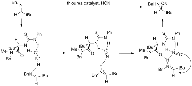- Zuend, S. J.; Jacobsen, E. N. (September 2009). "Mechanism of amido-thiourea catalyzed enantioselective imine hydrocyanation: transition state stabilization via multiple non-covalent interactions". J. Am. Chem. Soc. 131 (42): 15358–15374. doi:10.1021/ja9058958. PMC 2783581. PMID 19778044.