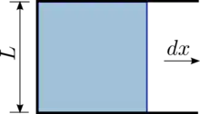 Surface tension γ of a liquid is the force per unit length. In the illustration on the right, the rectangular frame, composed of three unmovable sides (black) that form a "U" shape, and a fourth movable side (blue) that can slide to the right. Surface tension will pull the blue bar to the left; the force F required to hold the movable side is proportional to the length L of the immobile side. Thus the ratio F/L depends only on the intrinsic properties of the liquid (composition, temperature, etc.), not on its geometry. For example, if the frame had a more complicated shape, the ratio F/L, with L the length of the movable side and F the force required to stop it from sliding, is found to be the same for all shapes. We therefore define the surface tension as