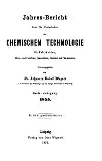 The journal changed its title several times. From 1855 to 1858 it was published as the Jahres-Bericht über die Fortschritte der chemischen Technologie für Fabrikanten, Chemiker, Pharmaceuten, Hütten- und Forstleute und Cameralisten and from 1859 to 1864 as the Jahres-Bericht über die Fortschritte und Leistungen der chemischen Technologie und technischen Chemie.[2][3] It was edited by its founder Johannes Rudolf von Wagner until his death in 1880, then by Ferdinand Fischer.[2][4] It was published by Otto Wigand of Leipzig.[2]