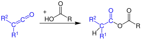 Ketenes react with a carboxylic acids to form carboxylic acid anhydrides: