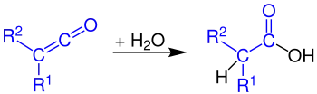 By reaction with water, carboxylic acids are formed from ketenes