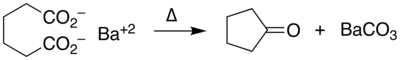 An example of intramolecular ketonization is the conversion of adipic acid to cyclopentanone with barium hydroxide.[7]