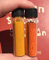 Lead monoxide exists in two polymorphs, litharge α-PbO (red) and massicot β-PbO (yellow), the latter being stable only above around 488 °C. Litharge is the most commonly used inorganic compound of lead.[67] There is no lead(II) hydroxide; increasing the pH of solutions of lead(II) salts leads to hydrolysis and condensation.[68] Lead commonly reacts with heavier chalcogens. Lead sulfide is a semiconductor, a photoconductor, and an extremely sensitive infrared radiation detector. The other two chalcogenides, lead selenide and lead telluride, are likewise photoconducting. They are unusual in that their color becomes lighter going down the group.[69]