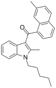 - Huffman JW, Zengin G, Wu MJ, Lu J, Hynd G, Bushell K, Thompson AL, Bushell S, Tartal C, Hurst DP, Reggio PH, Selley DE, Cassidy MP, Wiley JL, Martin BR (January 2005). "Structure-activity relationships for 1-alkyl-3-(1-naphthoyl)indoles at the cannabinoid CB(1) and CB(2) receptors: steric and electronic effects of naphthoyl substituents. New highly selective CB(2) receptor agonists". Bioorganic & Medicinal Chemistry. 13 (1): 89–112. doi:10.1016/j.bmc.2004.09.050. PMID 15582455.