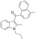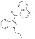 - Wiley JL, Smith VJ, Chen J, Martin BR, Huffman JW (2012). "Synthesis and pharmacology of 1-alkyl-3-(1-naphthoyl)indoles: Steric and electronic effects of 4- and 8-halogenated naphthoyl substituents". Bioorganic & Medicinal Chemistry. 20 (6): 2067–2081. doi:10.1016/j.bmc.2012.01.038. PMC 3298571. PMID 22341572.