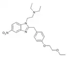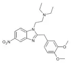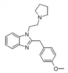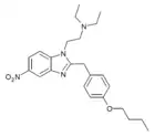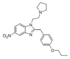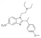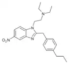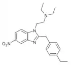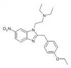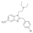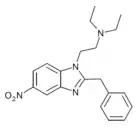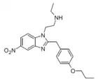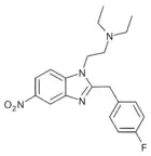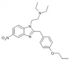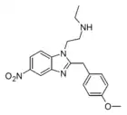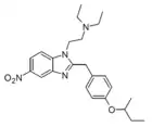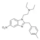 Benzimidazole opioids, also known as nitazenes, are a class of synthetic opioids with an unusual benzimidazole structure often referred to as "opioid New Psychoactive Substances", or "opioid NPS".[1][2] First synthesized in the 1950s by CIBA Pharmaceuticals as potential analgesic medications, several substances in the class have been identified, the best known being etonitazene.[1] Like other synthetic opioids, benzimidazole opioids bind the mu-opioid receptor and may exhibit potency up to several hundred times that of morphine. While several substances in this class have found applications in research, they have never been used in clinical medicine due to their profound risk of respiratory depression and death.[3] In the early 2020s, the substance has been recognized as emerging drugs of abuse.[4][5][6] Isotonitazine was first identified in samples of illicit drugs, and implicated in opioid overdose deaths in Europe, Canada, and the United States beginning in 2019.[7] Previously known nitazene analogs such as metonitazine and butonitazine, as well as novel nitazenes not previously patented, have since been discovered in toxicologic samples during forensic investigations.[6]