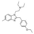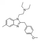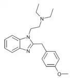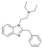- Hunger A, Kebrle J, Rossi A, Hoffmann K (1960). "Benzimidazol-Derivate und verwandte Heterocyclen VI. Synthese von Phenyl-[1-aminoalkyl-benzimidazolyl-(2)]-essigsäure-estern und -amiden" [Benzimidazole derivatives and related Heterocycles VI. Synthesis of phenyl-[1-aminoalkyl-benzimidazolyl-(2)]-acetic acid esters and amides]. Helvetica Chimica Acta (in German). 43 (6): 1727–1733. doi:10.1002/hlca.19600430634.