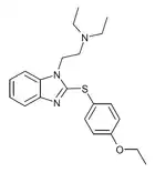 - Seki T, Sasajima M, Watanbe Y, Nakajima K (March 1967). "[Studies on 2-benzimidazolethiol derivatives. N. Analgesic effect and pharmacological property of 1-(2-diethylaminoethyl)-2-(p-ethoxyphenylthio)benzimidazole hydrochloride]". Yakugaku Zasshi (in Japanese). 87 (3): 296–301. doi:10.1248/yakushi1947.87.3_296. PMID 6069375.