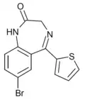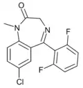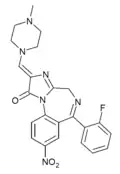 | Flutoprazepam | Restas | 1984 | 1, 2 | 2.5 | 0.5–9 | 87[28] | hypnotic, anticonvulsant, muscle relaxant |
