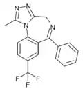 A large number of benzodiazepine derivatives have been synthesised and their structure-activity relationships explored in detail.[39][40][41][42] This chart contains binding data for benzodiazepines and related drugs investigated by Roche up to the late 1990s (though in some cases the compounds were originally synthesised by other companies such as Takeda or Upjohn).[43][44][45][46][47][48] Other benzodiazepines are also listed for comparison purposes,[49][50][51] but it does not however include binding data for;
