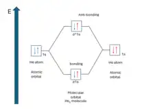 From bond order, one can predict whether a bond between two atoms will form or not. For example, the existence of He2 molecule. From the molecular orbital diagram, bond order,=1/2*(2-2)=0. That means, no bond formation will occur between two He atoms which is seen experimentally. It can be detected under very low temperature and pressure molecular beam and has binding energy of approximately 0.001 J/mol. [17]