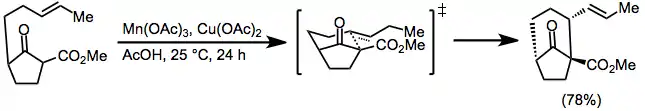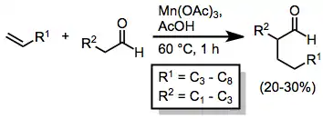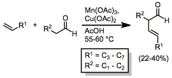 Intermolecular reactions between ketones/aldehydes and alkenes tend to result in low yields. In the absence of copper(II) acetate, hydrogen atom abstraction occurs, yielding saturated ketones or aldehydes.[8]