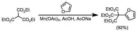 Aromatic compounds are also useful radical acceptors in manganese(III)-mediated coupling reactions. Furan reacts selectively at the α position to afford substituted products in high yield.[10]
