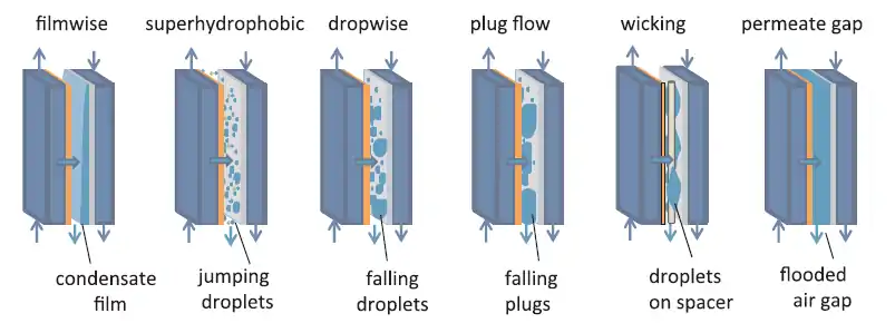 - Warsinger, David M.; Swaminathan, Jaichander; Morales, Lucien L.; Lienhard V, John H. (2018). "Comprehensive condensation flow regimes in air gap membrane distillation: Visualization and energy efficiency". Journal of Membrane Science. 555: 517–528. doi:10.1016/j.memsci.2018.03.053. hdl:1721.1/115268. ISSN 0376-7388. S2CID 103774569.