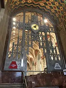 Monel was used for much of the exposed metal used in the interior of the Bryn Athyn Cathedral in Pennsylvania, religious seat of the General Church of the New Jerusalem. This included large decorative screens, doorknobs, etc.[1] Monel also has been used as roofing material in buildings such as the original Pennsylvania Station in New York City.[1]