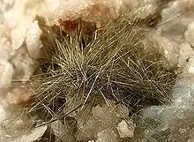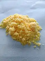 Nickel is one of the metals that can form Tutton's salts. The singly charged ion can be any of the full range of potassium, rubidium, cesium, ammonium (), or thallium.[37] As a mineral the ammonium nickel salt, (NH4)2Ni(SO4)2 · 6 H2O, can be called nickelboussingaultite.[38] With sodium, the double sulfate is nickelblödite Na2Ni(SO4)2 · 4 H2O from the blödite family. Nickel can be substituted by other divalent metals of similar sized to make mixtures that crystallise in the same form.[39]