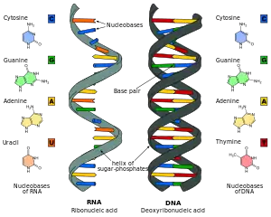 Nucleic acid analogues are compounds which are analogous (structurally similar) to naturally occurring RNA and DNA, used in medicine and in molecular biology research. Nucleic acids are chains of nucleotides, which are composed of three parts: a phosphate backbone, a pentose sugar, either ribose or deoxyribose, and one of four nucleobases. An analogue may have any of these altered.[1] Typically the analogue nucleobases confer, among other things, different base pairing and base stacking properties. Examples include universal bases, which can pair with all four canonical bases, and phosphate-sugar backbone analogues such as PNA, which affect the properties of the chain (PNA can even form a triple helix).[2] Nucleic acid analogues are also called xeno nucleic acids and represent one of the main pillars of xenobiology, the design of new-to-nature forms of life based on alternative biochemistries.