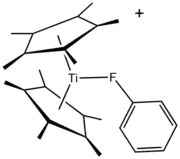 Organofluorine ligands have long been featured in organometallic and coordination chemistry. One advantage to F-containing ligands is the convenience of 19F NMR spectroscopy for monitoring reactions. The organofluorine compounds can serve as a "sigma-donor ligand," as illustrated by the titanium(III) derivative [(C5Me5)2Ti(FC6H5)]BPh4. Most often, however, fluorocarbon substituents are used to enhance the Lewis acidity of metal centers. A premier example is "Eufod," a coordination complex of europium(III) that features a perfluoroheptyl modified acetylacetonate ligand. This and related species are useful in organic synthesis and as "shift reagents" in NMR spectroscopy.