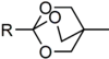 Trimethyl orthoformate and triethylorthoacetate are reagents. Another example is the bicyclic OBO protecting group (4-methyl-2,6,7-trioxa-bicyclo[2.2.2]octan-1-yl) which is formed by the action of (3-methyloxetan-3-yl)methanol on activated carboxylic acids in the presence of Lewis acids. The group is base stable and can be cleaved in two steps under mild conditions, mildly acidic hydrolysis yields the ester of tris(hydroxymethyl)ethane which is then cleaved using e.g. an aqueous carbonate solution.[5]