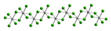 This reddish-black polymorph is orthorhombic and adopts a structure in which osmium centres are octahedrally coordinated, sharing opposite edges of the OsCl6 octahedra to form a chain.[30] A brown, apparently cubic polymorph forms upon reduction of osmium tetroxide with thionyl chloride:[31]
