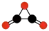 Another family of oxocarbons that has attracted special attention are the cyclic radialene-type oxocarbons CnOn or (CO)n.[27] They can be regarded as cyclic polymers of carbon monoxide, or n-fold ketones of n-carbon cycloalkanes. Carbon monoxide itself (CO) can be regarded as the first member. Theoretical studies indicate that ethylene dione (C2O2 or O=C=C=O) and cyclopropanetrione C3O3 do not exist.[17][18] The next three members — C4O4, C5O5, and C6O6 — are theoretically possible, but are expected to be quite unstable,[18] and so far they have been synthesized only in trace amounts.[28][29]
