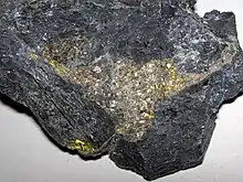 Palladium can be found as a free metal alloyed with gold and other platinum-group metals in placer deposits of the Ural Mountains, Australia, Ethiopia, North and South America. For the production of palladium, these deposits play only a minor role. The most important commercial sources are nickel-copper deposits found in the Sudbury Basin, Ontario, and the Norilsk–Talnakh deposits in Siberia. The other large deposit is the Merensky Reef platinum group metals deposit within the Bushveld Igneous Complex South Africa. The Stillwater igneous complex of Montana and the Roby zone ore body of the Lac des Îles igneous complex of Ontario are the two other sources of palladium in Canada and the United States.[32][33] Palladium is found in the rare minerals cooperite[34] and polarite.[35] Many more Pd minerals are known, but all of them are very rare.[36]