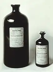 Ehrlich's approach of systematically varying the chemical structure of synthetic compounds and measuring the effects of these changes on biological activity was pursued broadly by industrial scientists, including Bayer scientists Josef Klarer, Fritz Mietzsch, and Gerhard Domagk. This work, also based on the testing of compounds available from the German dye industry, led to the development of Prontosil, the first representative of the sulfonamide class of antibiotics. Compared to arsphenamine, the sulfonamides had a broader spectrum of activity and were far less toxic, rendering them useful for infections caused by pathogens such as streptococci.[18] In 1939, Domagk received the Nobel Prize in Medicine for this discovery.[19][20] Nonetheless, the dramatic decrease in deaths from infectious diseases that occurred prior to World War II was primarily the result of improved public health measures such as clean water and less crowded housing, and the impact of anti-infective drugs and vaccines was significant mainly after World War II.[21][22]
