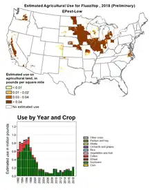 - US Geological Survey (2021-10-12). "Estimated Agricultural Use for Fluazifop, 2018". Retrieved 2021-12-27.