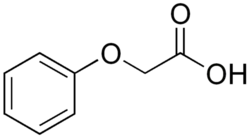 The first group to be discovered act by mimicking the auxin growth hormone indoleacetic acid (IAA).[1] When sprayed on broad-leaf plants they induce rapid, uncontrolled growth ("growing to death"). Thus when applied to monocotyledonous crops such as wheat or maize (corn), they selectively kill broad-leaf weeds, leaving the crops relatively unaffected.