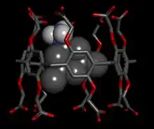 Pillararenes are composed of hydroquinone units linked by methylene bridges at para-positions. It features a symmetrical pillar architecture with two identical cavity gates. Pillar[5]arene is the most conformationally stable member in this family. Due to the close proximity of many electron-rich hydroquinones, the cavity of pillararenes are able to form strong association complexes with electron-poor species. Also, derivatives of the pillararenes can be generated by modifying the hydroxyl groups at all positions or selectively on one or two positions.[6]
