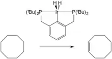 Pincer complexes catalyze the dehydrogenation of alkanes. Early reports described the dehydrogenation of cyclooctane by an Ir pincer complex with a turnover frequency of 12 min−1 at 200 °C. The complexes are thermally stable at such temperatures for days.[15]