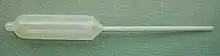 Pasteur pipettes are plastic or glass pipettes used to transfer small amounts of liquids, but are not graduated or calibrated for any particular volume. The bulb is separate from the pipette body. Pasteur pipettes are also called teat pipettes, droppers, eye droppers and chemical droppers.