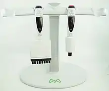 Typically the pipettes are vertically stored on holder called pipette stands. In case of electronic pipettes, such stands can recharge their batteries. The most advanced pipette stands can directly control electronic pipettes.[21]